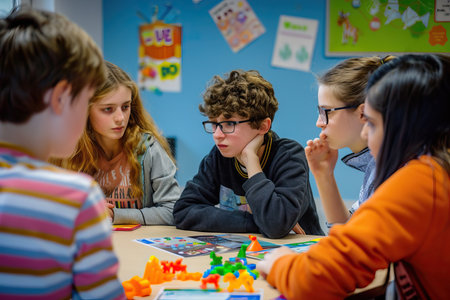 Four colleagues are sitting around a table, enjoying a board game during their break time, fostering teamwork and camaraderie