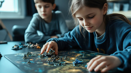 Teenage Girl and Boy Playing Board Game checkers In Living Room