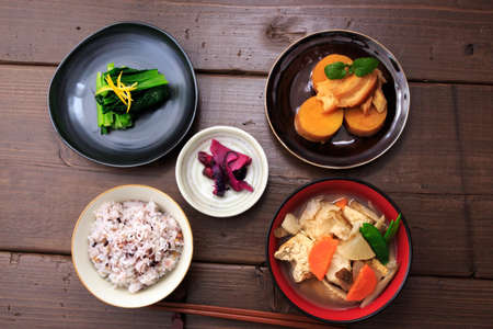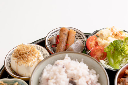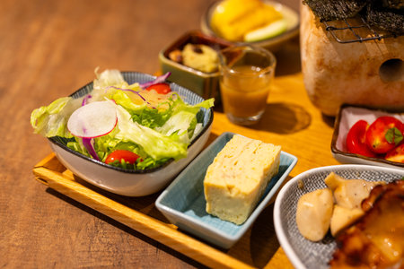 Japanese cuisine with lots of color, breakfast, set meals