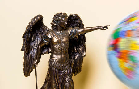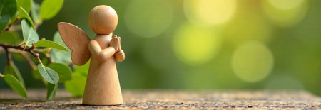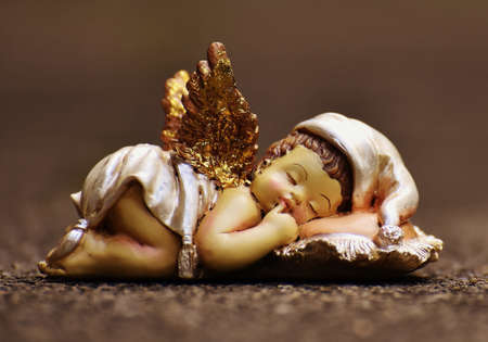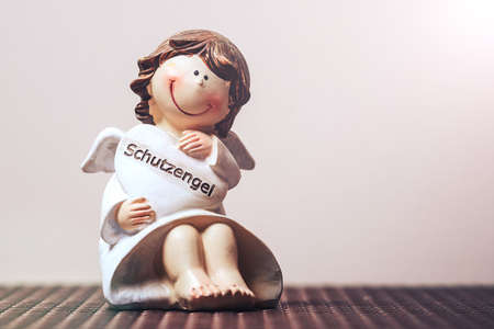 a small ceramic figure of a guardian angel clasping his hands in prayer. close-up, copyscape.