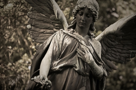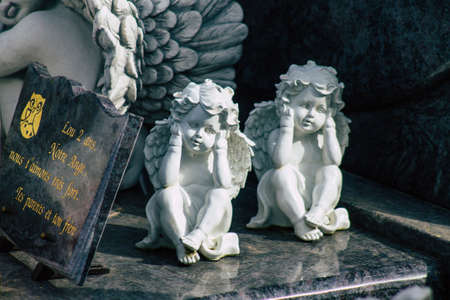 Statue. Sculpture. Portrait of angels with wings. Monumental cemetery.
