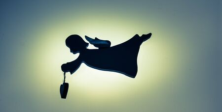 A silver angel statue holding a burning tea light candle, Traditional christmas or spiritual background