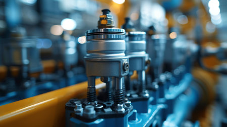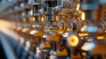 This image captures a detailed close-up of precision machinery components, showcasing meticulous engineering and craftsmanship in an industrial environment.