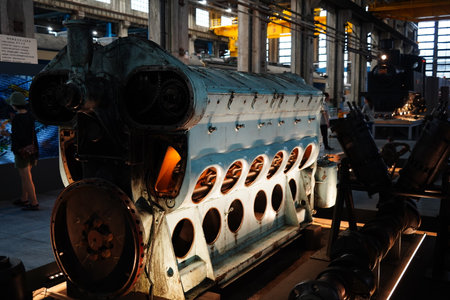 Panoramic view of electric motors on a merchant ship