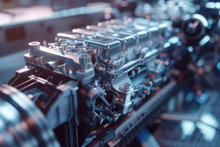 Detailed cutaway view of modern car engine design in high quality close up image