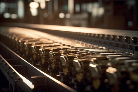 Conveyor belt with keys on factory production line. Toned.