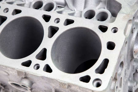 Engine cylinders diesel generator set without sleeves. Disassembled diesel generator.