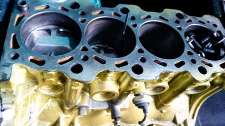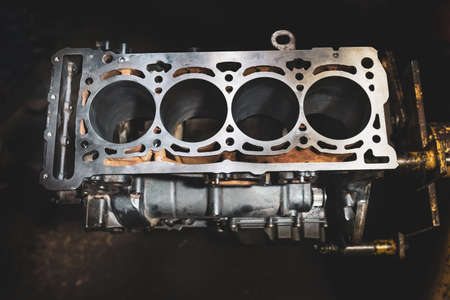 Engine valve car maintenance.The cylinder block of the four-cylinder engine. Disassembled motor vehicle for repair