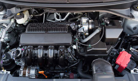 Car engine service concept - Close up new car engine room on checking engine maintenance service in car service center and copy space