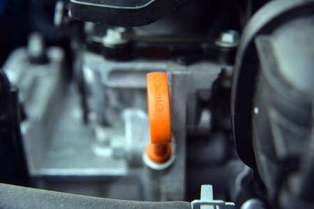 Car engine oil level dipstick, detail