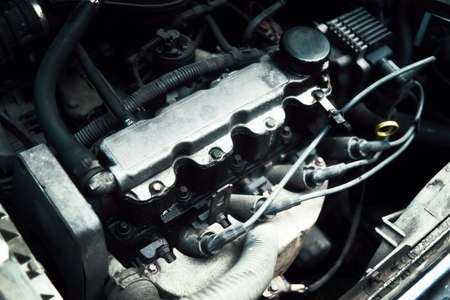 Close-up of the engine of an old car. Auto service.