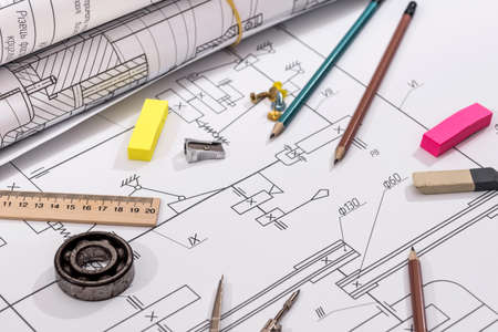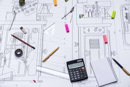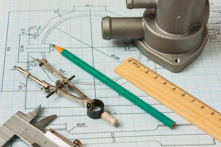 Engineering drawings and side light, protractor, notebook, term paper or thesis project. Applied mechanics