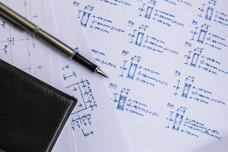 A close-up of the drawing and pencil correcting project. Pencil drawing a new project on paper.