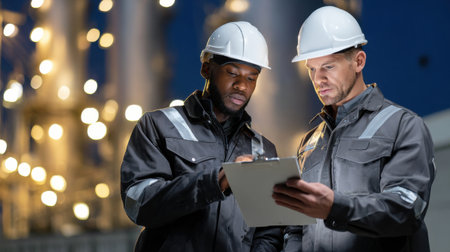professional industrial engineers in hard hats. working at heavy industry manufacturing factory, man worker in an construction industrial job, maintenance service check for safety first concept