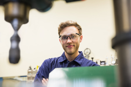 portrait of a young male engineer working in a factory