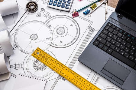 Engineering drawings and side light, protractor, notebook, term paper or thesis project. Applied mechanics