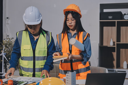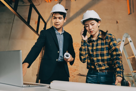Architects and engineers working collaboratively on construction project