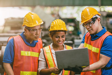 engineer team full skill quality for maintenance and training in industry factory worker , warehouse Workshop for factory operators, mechanical engineering team production.