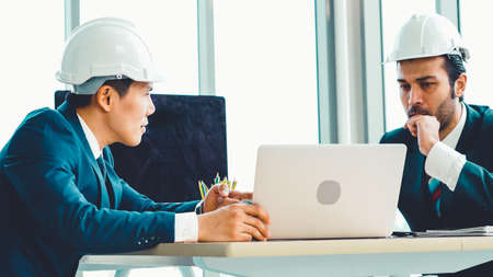 Engineer and architect meeting at office table about engineering and architecture project planning .