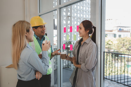 the architect discusses the content of the construction project that has just been concluded with the engineer to summarize again that they have a common understanding of the content of the meeting