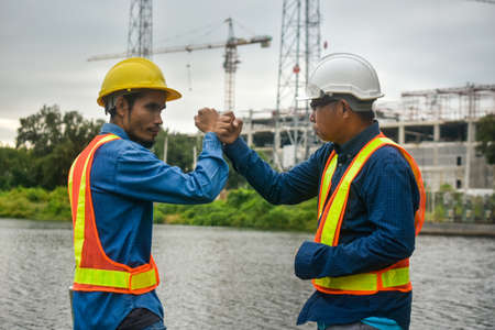 Engineer and businessman handshake,fist collide agreement in negotiations in Business conference finish.Focus on the hand