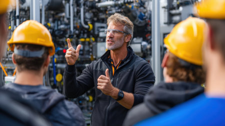 Professional engineer explain to team in meeting room. Engineer foreman discussion concept work.