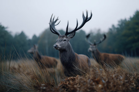 Majestic deer with antlers in a misty forest