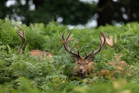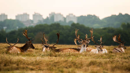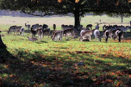 Richmond Upon Thames, London | UK - 2020.10.10: Group of deer in Richmond Park. The largest park of the royal parks in London