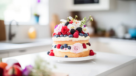 Homemade birthday cake in the English countryside house, cottage kitchen food and holiday baking recipe inspiration