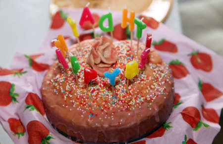 sweet Happy Birthday Cake with Candles letter burning