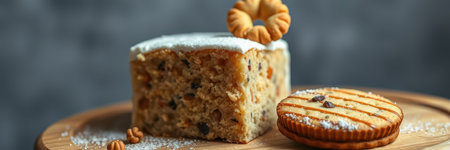 Delicious dessert assortment featuring rich cake and assorted cookies on a wooden platter in a cozy ambiance