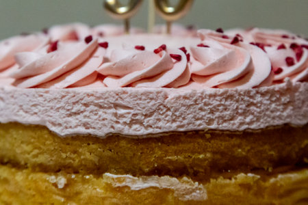 Deliciously decorated cake topped with swirls of cream and colorful sprinkles showcases baking artistry and sweet indulgence