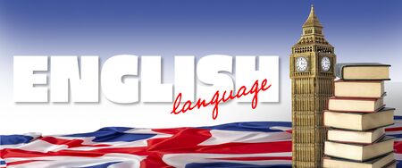 english language books , union jack and big ben. Concept