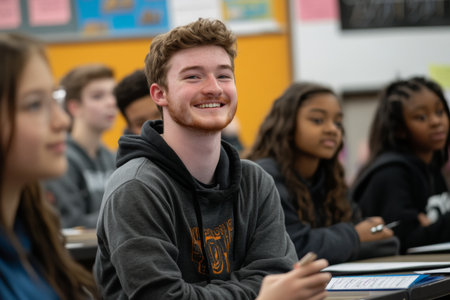 Happy Teenage Students Engaging Actively in Classroom Learning Activities at High School