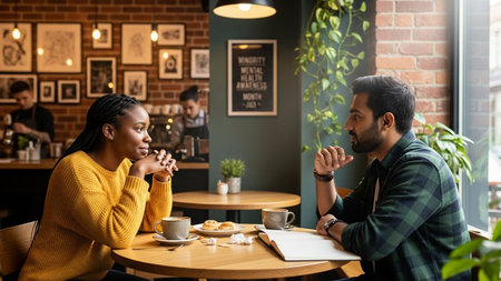 Catching Up and Connecting: Friends Enjoy Coffee and Conversation at a Cozy Cafe