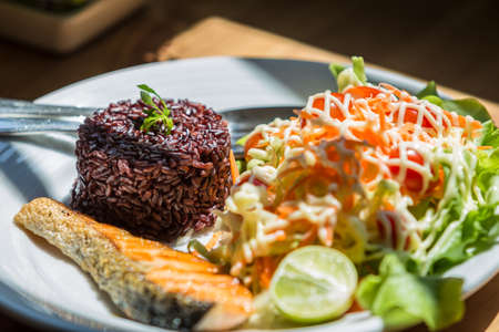 Healthy Food, Riceberry with Salmon. Appetizing.