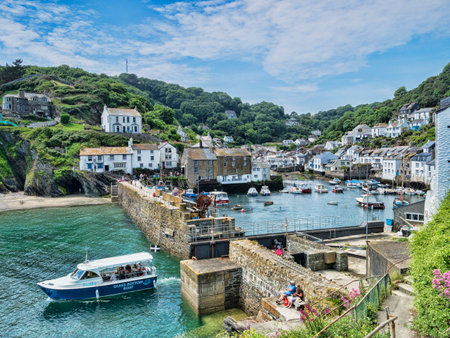 Mevagissey, Cornwall, UK - August 16, 2023: The harbor at Mevagissey on the south coast of Cornwall
