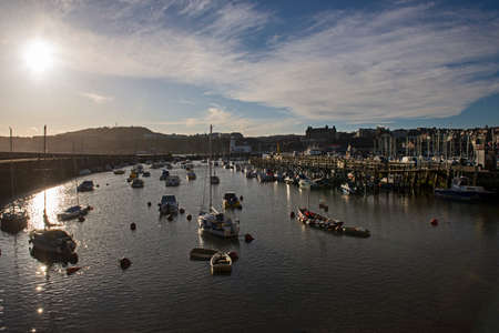 Whitby, North Yorkshire, UK - October 12, 2014: Scenic view of Whitby city in autumn sunny day.Whitby's attraction as a tourist destination is enhanced by its association with the world famous horror novel Dracula, written by Bram Stoker