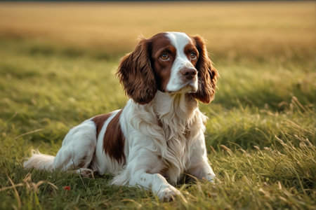 Adorable welsh springer spaniel dog breed in evening. Generative AI