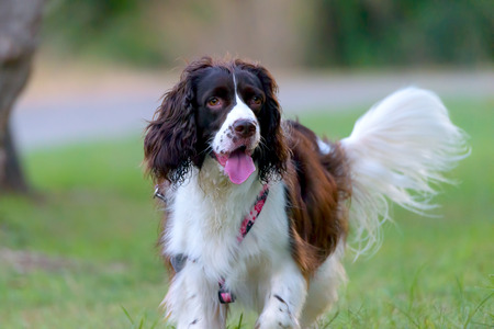 The dog breed English Springer Spaniel in a public park