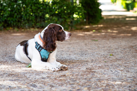 English Springer Spaniel relaxing in a park