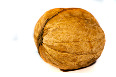 Walnut on white background. Peeled walnut on white. Half Walnut isolate. Full depth of field.