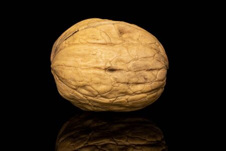 Walnut kernel on a slate backdrop. Healthy raw snack or organic vegetarian meal ingredients.