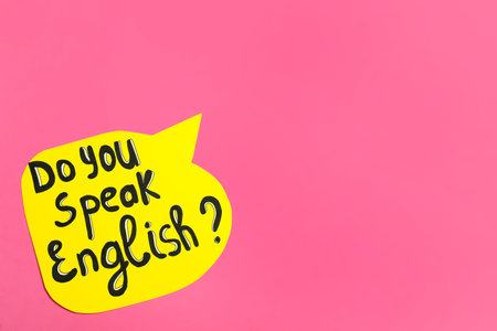 Paper speech bubble with question Do You Speak English on pink background, top view. Space for text
