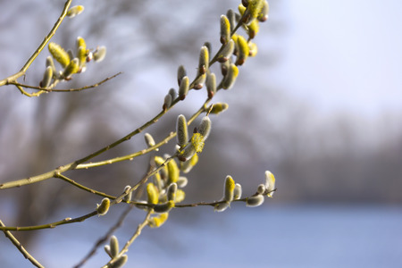 Willow, Salix caprea, branches with buds blossoming in early spring.