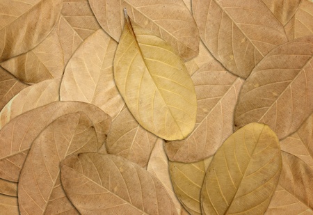 A close up macro shot of dried oak leaves in warm autumn colors. The intricate details of the veins create a natural and organic pattern.