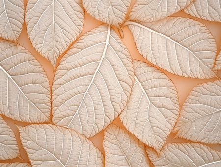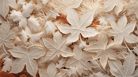 Elegant Ivory Foliage with Textured Design, Cascading Patterns and Skeletal Leaf Structures
