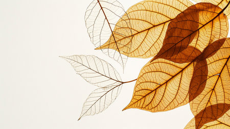Elegant foliage with intricate veining in a delicate skeletal arrangement on a neutral background.