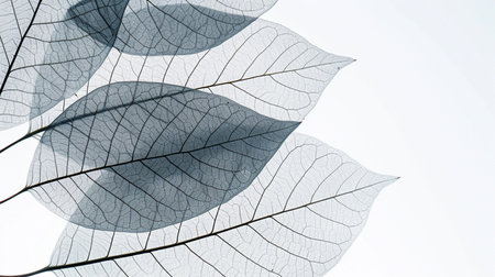 Delicate Transparent Leaves with Intricate Veins on a Cool Blue Background for Calm Scene