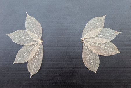 Elegant White Leaf Skeletons in Delicate Filigree Design on Soft Beige Surface with Macro Detail